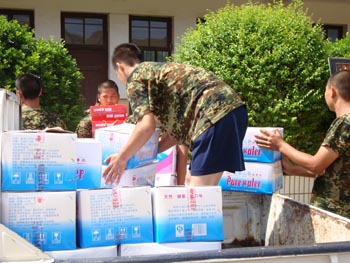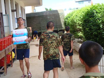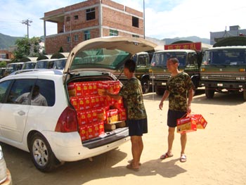 2008年7月18日,新味公司總經(jīng)理黃細(xì)忠與公司數(shù)名員工走訪霞莆某駐軍部隊(duì),并攜帶價(jià)值1萬(wàn)元人民幣的新味公司生產(chǎn)的新味牌純凈水和糕點(diǎn)用于改善該駐軍部隊(duì)官兵的生活。向仍在夏日的烈日下操作的全體部隊(duì)官兵致以親切的慰問(wèn)和崇高的敬意。瑾代表新味公司對(duì)祖國(guó)部隊(duì)的擁護(hù),對(duì)部隊(duì)官兵的關(guān)心,感謝部隊(duì)對(duì)社會(huì)做出的貢獻(xiàn)。