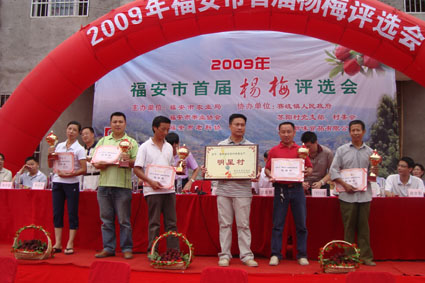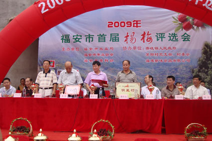 2009年06月15日,福安首屆楊梅評選活動在蘇陽舉行,本次評選會的主辦單位是福安市農(nóng)業(yè)局、福安市果業(yè)協(xié)會、福安市老科協(xié),協(xié)辦單位有賽歧鎮(zhèn)人民政府、蘇陽村民委員會與福建新味食品有限公司。此次評選共有17個鄉(xiāng)鎮(zhèn),53位農(nóng)民進(jìn)行參選,經(jīng)專家評選精挑細(xì)選,共產(chǎn)生2009年“新味杯”楊梅優(yōu)質(zhì)果評選金獎3名,優(yōu)質(zhì)獎5名,鼓勵獎5名。并設(shè)立禮品200份,禮品包含“蘇陽紅”金獎楊梅一籃與“新味牌”茶香蜜餞一提。金獎極品"蘇陽紅",大的一粒55克左右,味美汁多,盛是可口。
